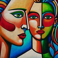 Dit werk in een figuratieve en expressionistische stijl geschilderd in acrylverf heeft als onderwerp de relatie tussen twee of meer mensen. Ik heb bewust de expressionistische meesters goed bestudeerd en geprobeerd de veelzijdigheid van alle kanten van een gezicht op een gestileerde manier weer te geven. Ik heb ook geprobeerd de spanning tussen mensen weer te geven, want hoe je het ook bekijkt, er is altijd een soort spanning aanwezig in een realiteit; dit in de goede en in de slechte zin van het woord. Beschouw dit werk als een spiegel van je eigen relatie.
