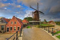 Stellingmolen 'De Kraai' in Sloten in Friesland. Een van de Friese Elf Steden. Een pittoresk vestingstadje stadje met veel oude gebouwen en grachten.
