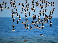Deze steltkluten (black-winged stilts), die hier hun vliegkunsten demonstreren, zijn op 23 september 2018 gefotografeerd te Playa Kanoa, Curaçao.