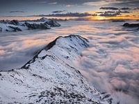 Italië, Lombardije, Stelvio Nationaal Park, uitzicht van Monte Scorluzzo richting Engadine, zon, wolken