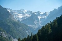 Stelvio Pass weg met uitzicht op de omliggende bergen en gletsjers