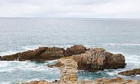De natuur op zijn mooist, door de wind krijg je prachtige golven aan de kust van Bretagne. Deze rots formatie lijkt door een visueel illusie een pad dat naar de rotsen verderop gaat met daar achter de eindeloze oceaan.
