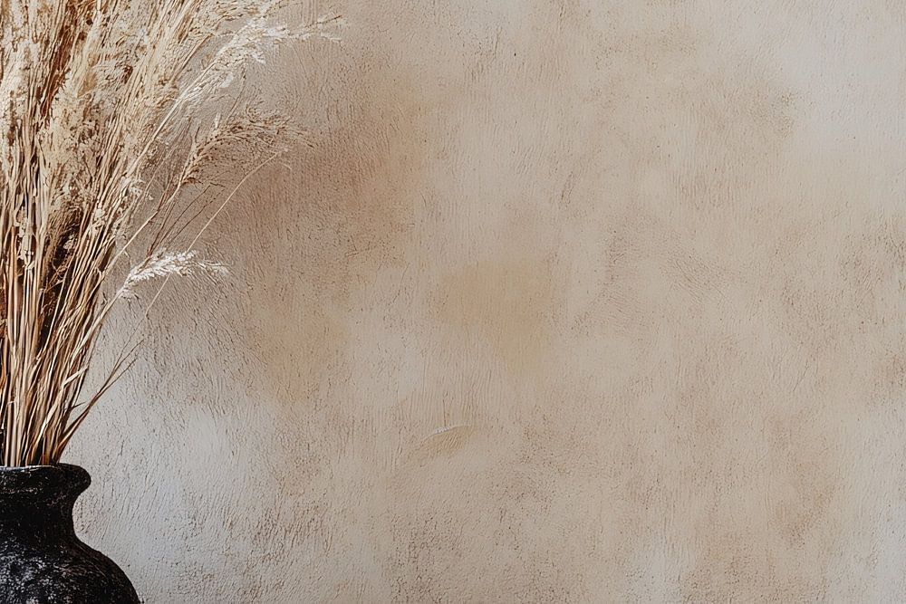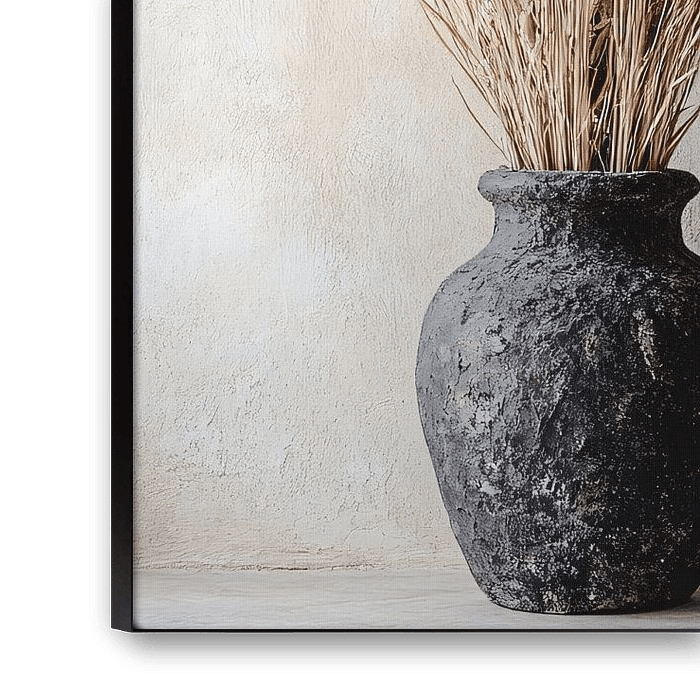 Dit elegante en rustgevende ontwerp toont een robuuste, donkerstenen vaas gevuld met fijne droogbloemen. Het ontwerp straalt eenvoud en natuurlijkheid uit, ideaal voor minimalistische en Japandi-interieurs. De neutrale kleuren passen perfect in elke ruimte waar een serene sfeer gewenst is. Deze compositie brengt warmte en een vleugje natuur naar binnen, zonder overweldigend te zijn. Perfect als decoratie voor woonkamers, hallen of kantoren.
