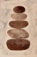 Een stapeling van vijf stenen straalt rust en stevigheid uit in deze compositie met een fijne, korrelrijke verflaag. De natuurlijke imperfectie van de vormen geeft een ambachtelijk karakter aan het werk. Met de terracotta-variant ontstaat een warme, aardende sfeer, perfect passend bij natuurlijke materialen zoals linnen, leem of hout. Ideaal voor gebruik in een meditatieruimte of als aards accent in een interieur met Japandi-invloed.