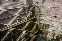 Step Well - Toorji Ka Jhalara. Symmetrie stappen. Geometrie. Erfgoed in Jodhpur, Rajasthan, India