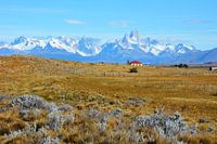 De ruige natuur in Chileens en Argentijns Patagonië is één van de meest imposante die wij ooit zagen. Dit is het aanzicht op Los Glaciares National Park bij de plaats El Chalten in Argentinië. De uitgestrekte steppe wordt afgebakend door de besneeuwde bergtoppen in de verte. En dat huisje met het rode dak? Daar wil ik best een tijdje wonen!