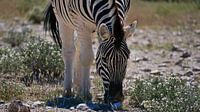 Koop de foto Steppe zebra's grazend in Etosha Nationaal Park van Timon Schneider op canvas, aluminium dibond, (ingelijste) fotoprint, behang en ArtFrame, op maat geprint in Fine-Art kwaliteit.