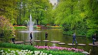 Altijd leuk om "over" het water te lopen via stepping stones. Je wordt je meteen bewust van je evenwicht gevoel en hoopt dat je de overkant zonder nat pak haalt. Deze vijver is te vinden in het mooie lente bloemenpark de Keukenhof in Lisse Noord-Holland.