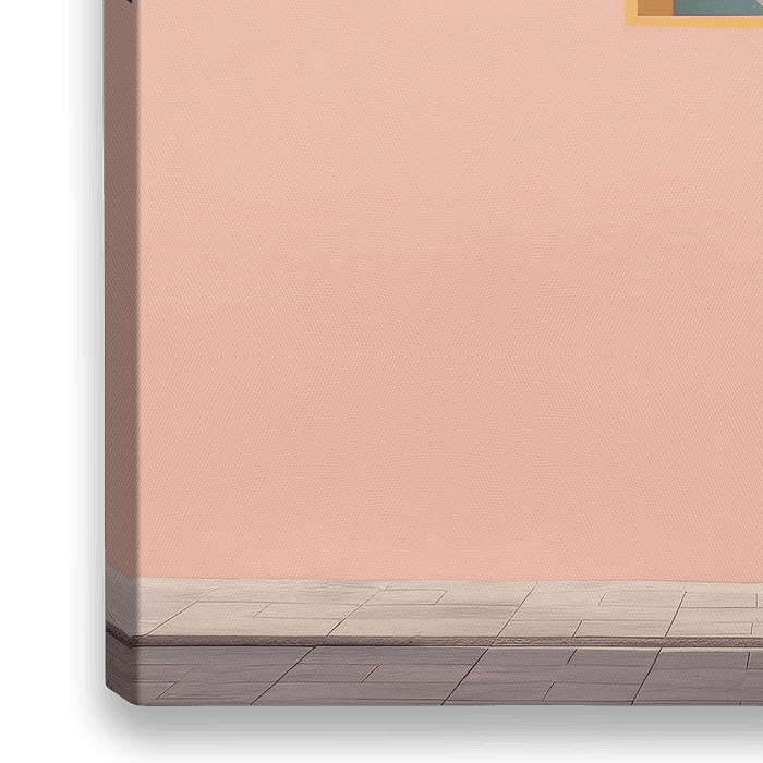Heldere pastelvlakken en strakke lijnen vormen een ritmisch spel van licht, kleur en architectuur. Een moderne compositie vol balans en optimisme.