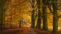 Het Veluwse beukenbos bij Ellecom in volle herfstkleuren. De prille ochtendzon zet de warme kleur nog eens extra aan.
