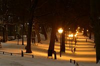 Besneeuwd Sterrenburg langs de Catharijnesingel in Utrecht.
