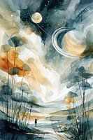 Koop dit abstracte kunstwerk Sterrenhemel en Droomlandschap - Dromerig Schilderij van Peter Pen tekeningen en schilderijen als print op canvas, aluminium dibond, (ingelijste) fotoprint, behang en ArtFrame. Voor jou op maat geprint in Fine-Art kwaliteit.