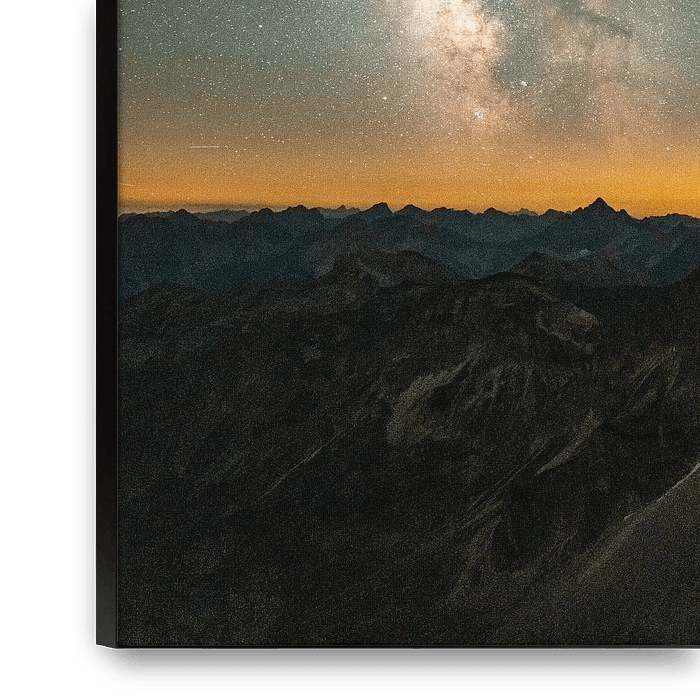 Jouw gekozen kunst op doek, gespannen in een aluminium frame. Snel en eenvoudig te verwisselen voor een frisse uitstraling en helemaal zoals jij het wilt.