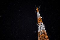Nachtelijke sterrenhemel boven een zendmast bij de Bromo vulkaan op Oost-Java, Indonesië.