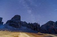 Een kraakheldere nacht in de Brenta Dolomieten. Gemaakt vanaf Rifugio Alimonta boven Madonna di Campiglio met een sluitertijd van ruim tien minuten. De sterren trekken langs de hemel met de Melkweg net rechts van het midden.