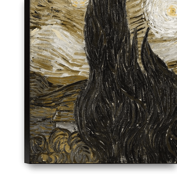 Koop dit schilderij Sterrennacht Vincent van Gogh in modern jasje nr. 1 van Kjubik als reproductie op canvas, aluminium dibond, (ingelijste) fotoprint, behang en ArtFrame, op maat geprint in Fine-Art kwaliteit.