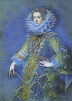 Koningin Elizabeth Van Bourbon door Rodrigo De Villandrando, gecombineerd met de bekende stijl van Vincent van Gogh's Sterrennacht.