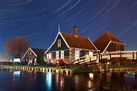 Koop de foto Sterstrepen boven de Zaanse Schans van Anton de Zeeuw op canvas, aluminium dibond, (ingelijste) fotoprint, behang en ArtFrame, op maat geprint in Fine-Art kwaliteit.