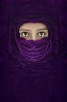 Net zoals de foto van de Desert Roos, is deze afbeelding geïnspireerd door het werk van Steve McCurry. Ditmaal is er gekozen voor een paarse doek en een iets andere compositie. De invloed van Steve McCurry is duidelijk voelbaar in de manier waarop het onderwerp is vastgelegd, met een focus op levendige kleuren en het vangen van emotie in het beeld. Door te kiezen voor een paarse doek wordt een unieke sfeer gecreëerd, die zowel mysterieus als uitnodigend is.