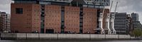 Deze afbeelding toont de opvallende funderingen van de concertzaal Elbphilharmonie in Hamburg met de aangrenzende historische havenkranen, die herinneren aan de maritieme geschiedenis van de stad. De combinatie van moderne architectuur en industrieel erfgoed geeft de scène een speciale symboliek. Perfect geschikt voor thema's als architectuur, stedenbouw, cultuur en de combinatie van traditie en moderniteit. Het beeld straalt een gevoel van innovatie, geschiedenis en stedelijke flair uit.