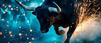 Stier in beweging met vonken - Dynamisch van Poster Art Shop