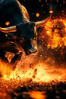 Stier in vlammen - cryptocurrency symbool van Poster Art Shop