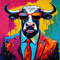 Pop Art Stier 02.86 - een Pop Art Schilderij als echte Blikvanger... Uit onze collectie 'Sharply Dressed Animals'. Dit schilderij krijgt gegarandeerd aandacht...