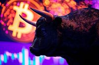 Koop dit abstracte kunstwerk Stierenbeeld met Bitcoin achtergrond van Poster Art Shop als print op canvas, aluminium dibond, (ingelijste) fotoprint, behang en ArtFrame. Voor jou op maat geprint in Fine-Art kwaliteit.