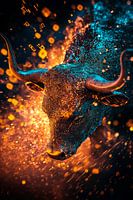 Een krachtig beeld dat de energie en kracht van een stier vastlegt in indrukwekkende kleuren. De gloeiende details en dynamische effecten geven een gevoel van beweging en levendigheid. Ideaal voor een moderne woonkamer of een creatief kantoor waar het kan fungeren als een inspirerend statement.