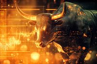 Sterk en majestueus, een gouden stier straalt kracht en dynamiek uit terwijl digitale lijnen pulseren op de achtergrond. Dit betoverende kunstwerk belichaamt energie en groei en past perfect op kantoor om inspiratie en vastberadenheid op te wekken bij elke ondernemer. Een blikvanger die de ruimte vult met een aura van kracht.