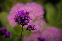 Dit prachtige kleine bloempje is het Stijf ijzerhard. Het bloempje staat heel hoog op de stengel. Deze foto is gemaakt net nadat het regende en daarom zitten er spetters op de bloem en komen de kleuren nog mooier uit de verf. Met de roze kleur van de Hemelsleutel wazig op de achtergrond is deze bloem een eyecatcher.