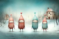 Ontdek de charme van de schattige kabouters in hun ijzige fantasie. Deze serie afbeeldingen vertelt een fantasierijk verhaal terwijl de kleine elfjes met hun puntmutsen door besneeuwde landschappen dwalen, sleeën en eenzame paden verkennen. De artistieke illustraties nemen je mee in een wereld vol magie, humor en winterse eenzaamheid.…