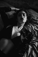 Stijlvol boudoir portret in zwart-wit. Monochroom, erotiek. Kies zelf het formaat en materiaal bij dit werk en maak er een bijzondere blikvanger van voor jouw interieur.