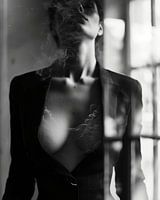 Stijlvol boudoir portret in zwart-wit. Monochroom, erotiek. Kies zelf het formaat en materiaal bij dit werk en maak er een bijzondere blikvanger van voor jouw interieur.