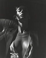 Stijlvol boudoir portret in zwart-wit. Monochroom, erotiek. Kies zelf het formaat en materiaal bij dit werk en maak er een bijzondere blikvanger van voor jouw interieur.