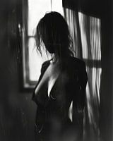 Stijlvol boudoir portret in zwart-wit. Monochroom, erotiek. Kies zelf het formaat en materiaal bij dit werk en maak er een bijzondere blikvanger van voor jouw interieur.