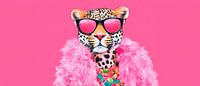 Een stijlvolle jaguar in oogverblindend roze met zonnebril staat in de schijnwerpers, gehuld in pluizig, levendig bont. Dit ongewone kunstwerk brengt een vleugje extravagantie en joie de vivre in elke woonkamer en zal zeker bewonderende blikken en gesprekken uitlokken. Een echte blikvanger die de kamer laat stralen!