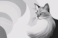 Dit stijlvolle ontwerp toont een prachtige kat in een minimalistische zwart-wit stijl. Met vloeiende lijnen en zachte tinten straalt dit kunstwerk elegantie en rust uit. Het design is perfect voor moderne interieurs en kan eenvoudig worden geïntegreerd in zowel woonkamers als slaapkamers. Door de monochrome opzet en het gebruik van contrasterende schaduwen, trekt de kat op subtiele wijze de aandacht zonder te overheersen. Dit kunstwerk voegt een vleugje sereniteit toe aan elke ruimte en is ideaal voor dierenliefhebbers die van strakke, moderne kunst houden. Een ideale toevoeging voor wie op zoek is naar verfijning met een speelse twist.