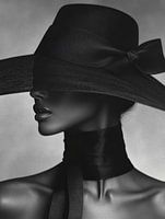 Stijlvol portret in zwart, contemporary art. Portret van een jonge vrouw met een grote zwarte hoed. Een bijzondere blikvanger voor je interieur! Kies zelf het formaat en materiaal bij dit werk en maak het helemaal naar wens.