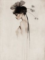 Stijlvol portret van een vrouw met botanische elementen. Een bijzondere blikvanger voor je interieur. Kies zelf het formaat en materiaal bij dit werk en maak het helemaal naar wens.