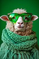 Met een ondeugende twinkeling in zijn groene glazen glijdt dit stijlvolle schaap in een wollen deken die even cool als knus is. De combinatie van frisse groene tinten en de lieve, relaxte look maakt het de perfecte blikvanger voor de woonkamer en creëert een ontspannen maar levendige sfeer. Ideaal om gasten te laten glimlachen!