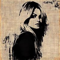 Deze wanddecoratie straalt tijdloze charme en verfijning uit. Het portret toont een krachtige en stijlvolle vrouw met een blik vol mysterie en allure, omlijst door haar elegante blonde lokken. De monochrome tinten geven het kunstwerk een klassieke uitstraling, terwijl de subtiele texturen het geheel een moderne twist geven.