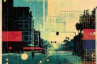 Stijlvolle retro poster met grafische elementen en stippen. Avond stad. Thema van communicatie