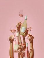 Koop dit digital art kunstwerk Stijlvolle rosé wijn compositie met zwevende handen op pastelroze achtergrond van But First Framing als reproductie op canvas, aluminium dibond, (ingelijste) fotoprint, behang en ArtFrame, op maat geprint in Fine-Art kwaliteit.