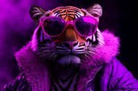 Met een vleugje flamboyantie en een speelse flair straalt deze tijger met opvallende roze zonnebril en stijlvolle jas pure joie de vivre uit. De felle kleuren en opvallende uitdrukking voegen een levendige sfeer toe aan elke kamer, ideaal voor een moderne woonkamer of een creatief kantoor ontworpen om inspiratie te stimuleren.