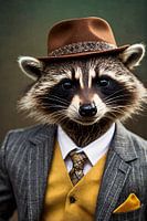 Koop de foto Stijlvolle wasbeer met hoed van Art & Soul Creations als print op canvas, aluminium dibond, (ingelijste) fotoprint, behang en ArtFrame. Voor jou op maat geprint in Fine-Art kwaliteit.