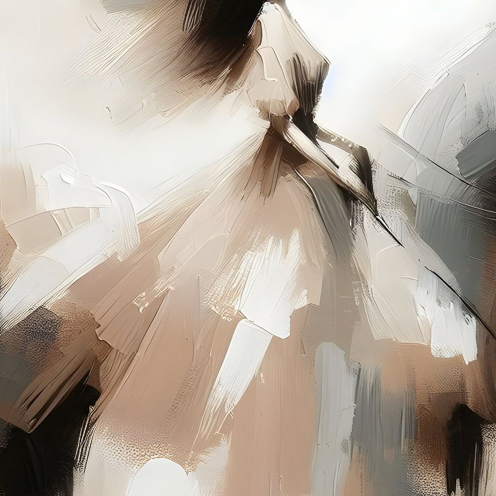 Dit abstracte olieverfwerk vangt de elegante kracht van een dame met een grote hoed die sierlijk te paard door zachte natuurtinten beweegt. De vloeiende penseelstreken en gelaagde texturen creëren een dromerige, bijna poëtische sfeer. Warme aardsekleuren zorgen voor een harmonieuze compositie die rust en mysterie uitstraalt. Het werk…