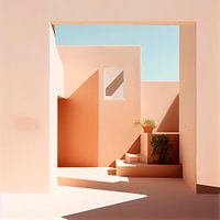 De gepleisterde woning, overgoten door de zonnestralen geven de kijker een warm en zomers gevoel.