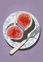 Stilleven met vijg, op Delfts Blauw bordje met vorkje.