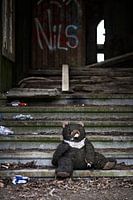 De eeuwige wachter zit voor altijd op de trap. Hij houd alles in de gaten en bewaakt wie er naar binnen en naar buiten komt. Nooit zal hij het kasteel alleen laten.